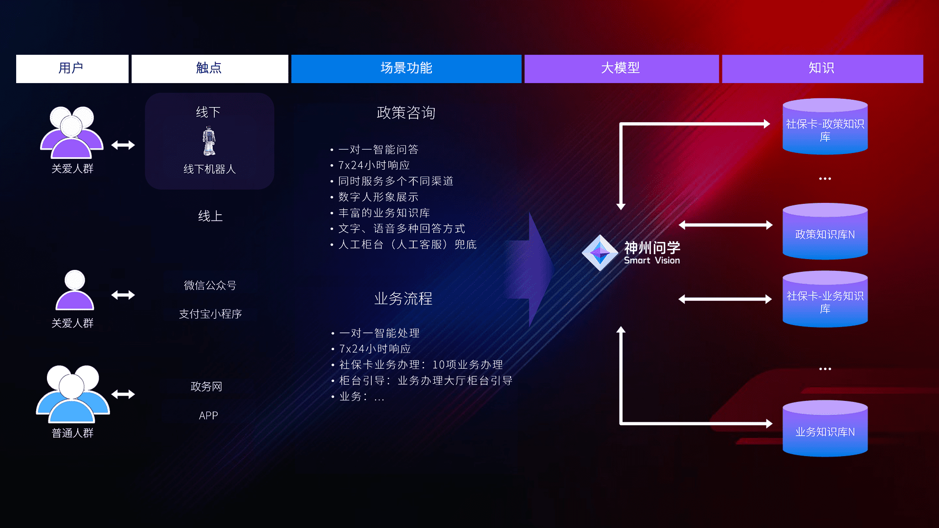 • 线上线下全覆盖:线上提供微信公众号、、、支付宝小程序、、、政务网、、app多种渠道,,与线下机器人形成完整服务体系。。。。